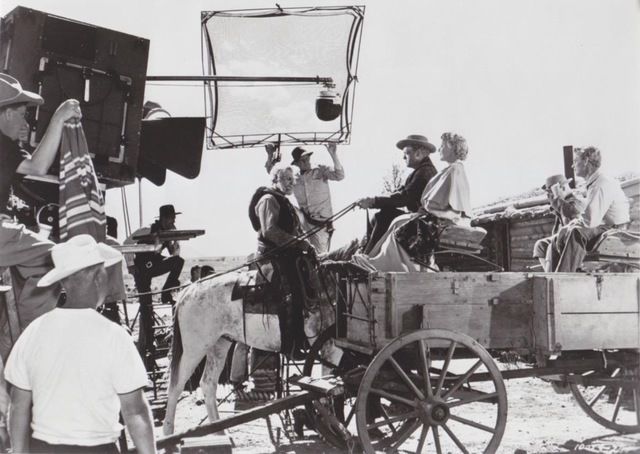فان هيفلين يقود العربة بدون الحصان بينما يتلقى باقى الابطال التعليمات من المخرج جورج ستيفينس