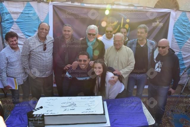 أحمد زاهر وحسين فهمي وصلاح عبد الله في الاحتفال ببدء التصوير الرسمي لفيلم (فارس).