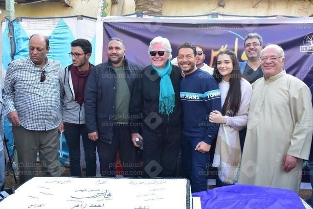 أحمد زاهر وحسين فهمي وصلاح عبد الله في الاحتفال ببدء التصوير الرسمي لفيلم (فارس).
