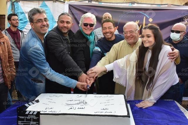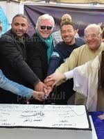 أحمد زاهر وحسين فهمي وصلاح عبد الله في الاحتفال ببدء التصوير الرسمي لفيلم (فارس).