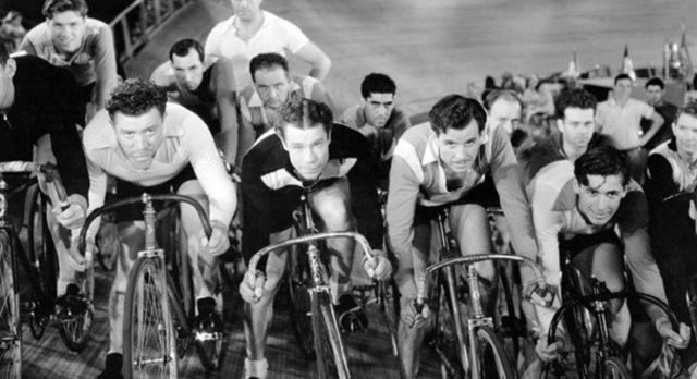 مشهد من فيلم Six Day Bike Rider 1934 يجمع جو إي براون مع فرانك ماكهيو و جوردون ويسكوت.
