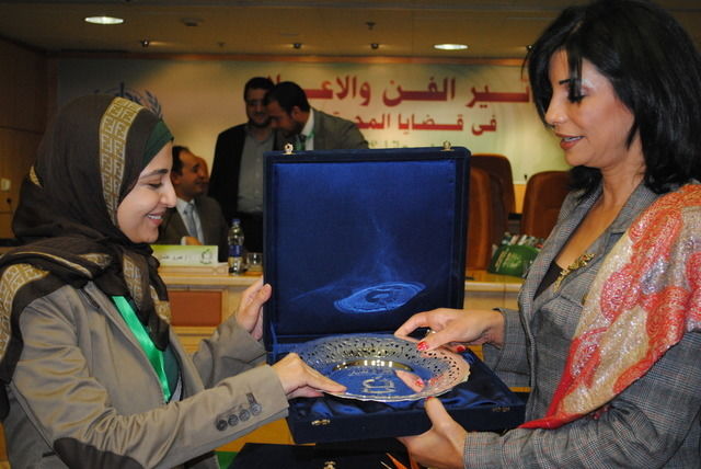 The World Health Organization (WHO) has hosted revered actress Sawsan Badr at the organization’s Nasr City office to honor her for receiving the award for best performer at the Cairo International Film Festival for her role in the title “Al Shawq” (“The Yearning”). The visit took place as part of the activities of the organization “Life without Smoking” which is holding a seminar titled “The Effects of Art and Media on Societal Issues”.Sawsan has expressed her pleasure in taking part in the seminar which seeks to bring the public’s attention to the dangers of smoking. Moreover Sawsan has also expressed her delight at being honored by the WHO and stated: “I thank the WHO for their invitation to attend the enlightening seminar, I have sensed the sincerity of all those present which is something that has added to my happiness at this occasion. Moreover I hope that the law which would forbid the presentation of scenes that involve smoking in cinema or drama works will be ratified and that penalties for violation would be severe. Such a measure would allow us to contribute to the reduction of the number of smokers in Egypt.”Sawsan further adds: “I wish to participate myself in seminars to raise awareness in schools and universities which should take the form of open discussions that seek to include youths without presenting direct advice that could alienate them.”Thereafter the head of the WHO in Cairo, along with performer Hanan Tourk who is on the board of directors of “Life without Smoking” honored the artist by awarding her a ceremonial plate.The seminar was attended by a host of other artists including Dr. Ashraf Zaky, Mohamed Al Shaqanqary, Ehab Fahmy, screenwriters Maryam Na’oum and Mohmed Al Ghaitty, producer Khaled Helmy, retired footballer Nader Al Sayyid and Mostafa Housny.