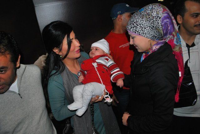 Syrian actress Jumana Mourad along with actors Sabry Fawaz and Hassan Al Raddad and script writer Naser Abdel Rahman decided to take a tour in several theaters where their most recent movie “Palm of the Moon” was being played. They were seen by many fans and audience and photographed with them.Jumana Mourad plays the role of Lobna in the movie, where she portrays a female with double personalities of one who wants to get married so much that she won’t let her lover touch her hand to encourage him and increase his desire while at the same time she is having an affair with his brother. When her lover “Bakr” finds out he gets into a nervous and emotional breakdown.The movie stars Khaled Saleh, Wafaa Amer , Ghada Abdel Razak, Hassan Al Radad, Haitham Ahmed Zaki, Horeya Farghali, Sabry Fawaz, Yasser El Masry and Ramez Amir. The script is written by Naser Abdel Rahman and directed by Khaled Youssef.