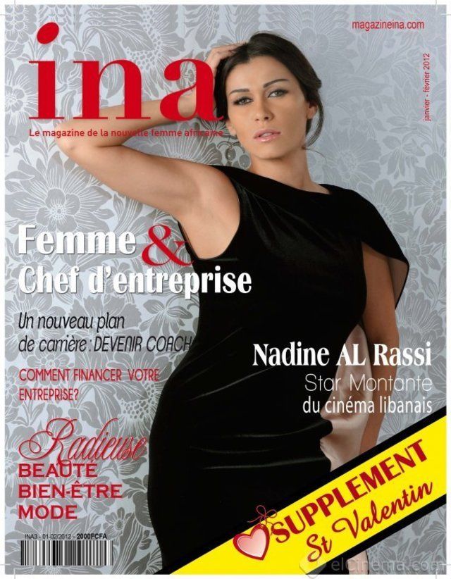"Ina" international magazine has chosen to publish the photo of the Lebanese artist Nadine Al Rassi as a cover of her Valentine's Day edition. In an exclusive and bold conversation, "Ina" shaded lights on Nadine's character as a Lebanese professional artist, as an Arab human and a woman in love.At the beginning of the conversation, the magazine described Nadine as the upcoming Lebanese drama star who abbreviated saying:" I don't allow the applause distract me from hearing and accepting criticism. I do criticize myself in order to improve my professional condition. Practically my work is a challenge of my abilities."Moreover she also expressed her happiness with her roles that addresses the social, legal and life problems of Lebanese women. She also mentioned the feelings she shows in front of the camera are very true and derived from her happy family life.The interview of "Ina" international magazine that's diffused in many countries and made many interviews with the most prominent Women like: the Senegal's first lady, Viviane Wade and Gabon's first lady, Sylvia Bongo Ondimba has eventually gathered it's readers with Nadine Al Rassi.