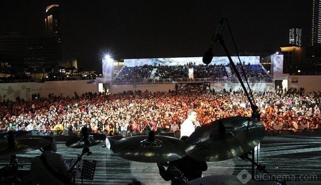 Next to Burj Khaleefa in Al Muntazah Park was the Du Music Festival. The firework of the show was the one and only Amr Diab where he through a magical concert on Friday 9 March. As all his concerts, it was successful beyond words with many youth attending.Diab sang many of his famous songs and the audience sang along with him. And as usual, he read out the lyrics of one of his new songs but without its music.
