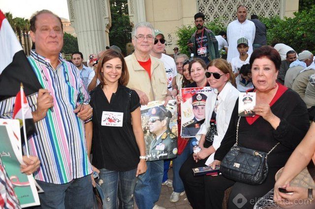 A number of stars participated in the millioneya following a call by Defense Minister Gen. Abdel Fattah el Sisi for Egyptians to come out in support of the military as a "mandate" to crackdown on violence and terrorism. The past week has witnessed a number of clashes and attacks on security forces by Brotherhood supporters, many of whom have maintained a sit-in at Rabea el-Adaweya Square prior to Morsi's ouster on July 3rd.