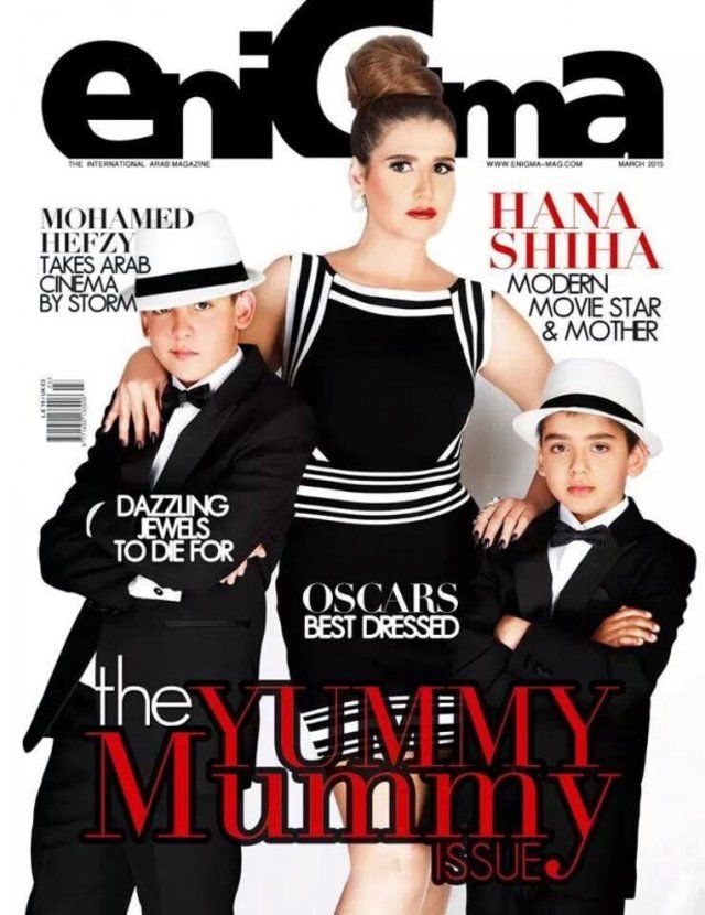 Actress Hana Shiha appeared in a photo shoot orchestrated by photographer Mahmoud Abdel Salam, along with her two sons Adam and Malek, which was done for the cover of the upcoming Mohter's Day issue of the monthly magazine “eniGma.”