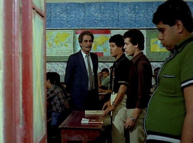 مشهد من فيلم عالم وعالمة يجمع محمود ياسين و الشباب وائل نور، شريف منير، و حسين ابراهيم.