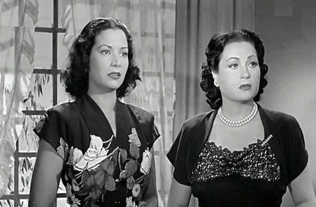مديحة يسرى وعقيلة راتب فى مشهد من فيلم "من غير وداع".