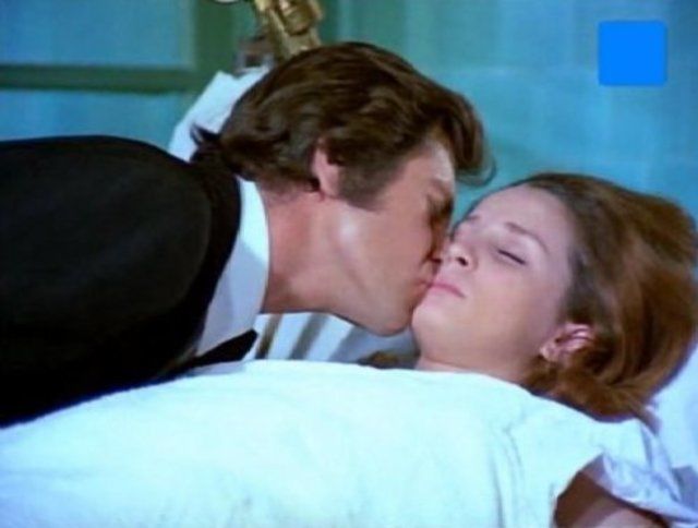 مراد (حسين فهمي) يُــقبّــل حبيبته عايدة (نجلاء فتحي) التي فارقت الحياة بعد قصة حب لا حدود لقوتها
