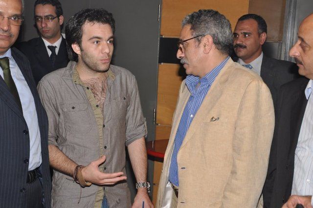 صورة تجمع شريف رمزي بوزير الثقافة عماد ابو غازي بالعرض الخاص لفيلم المسافر بسينما نايل سيتي.