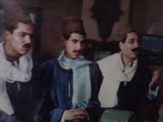 أولاد العمده فى مشهد ابلاغ المحامى كسب قضية الأرض . الممثلون من اليمين: حسين الشريف . محمد بسيونى . سامى نعيم عيسى
