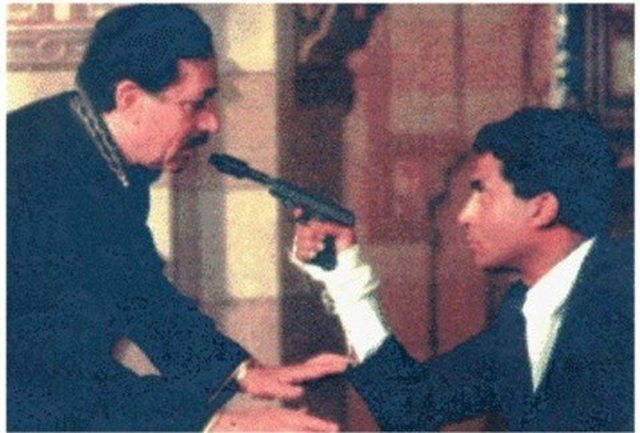ابو بكر عزت و أحمد زكي في مشهد من فيلم اﻷمبراطور
