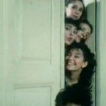 الأخوات الأربعة من ضمنهنّ العروسة كذلك يلقنّ النظر خلسة على العريس المتواجد مع الأهل .