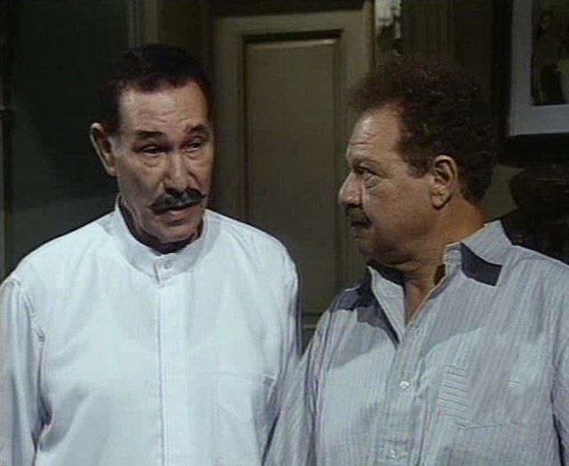 الفنان الكبير حمدي غيث في مشهد من مسلسل زيزينيا يجمعه بـ يحيي الفخراني