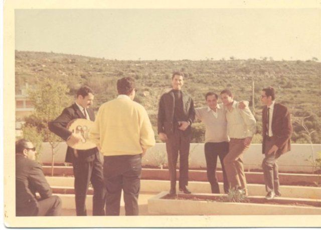الشاعر محمد حمزة مع المطرب ماهر العطار و بعض الأصدقاء فى لبنان أثناء فيلم لقاء الغرباء