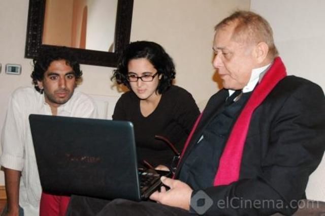 محمود عبد العزيز يشاهد على جهاز اللاب توب ماصوره من مشاهد مع المخرجه و مساعدها