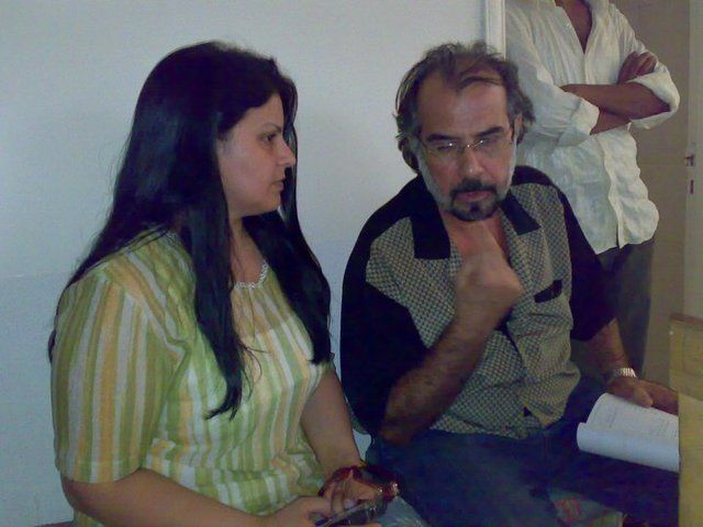 الفنانة عبير فريد و المخرج حسن حسني في كواليس مسلسل رسائل من رجل ميت المخرج حسن حسني المؤلف حامد المالكي 2008 تم التصوير في سوريا الشام