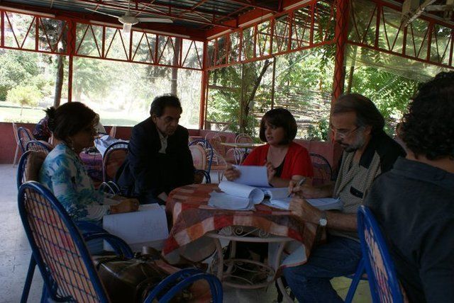 الفنانة عبير فريد و الفنان قائد النعماني و المخرج حسن حسني في كواليس مسلسل رسائل من رجل ميت المخرج حسن حسني المؤلف حامد المالكي 2008 تم التصوير في سوريا الشام