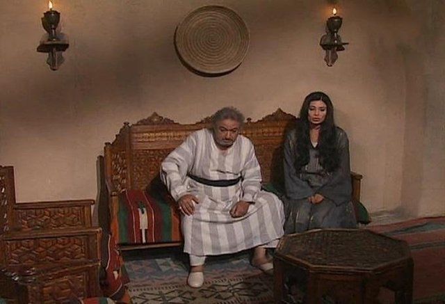 مشهد من المسلسل يجمع الفنان نور الشريف والفنانة سوسن بدر