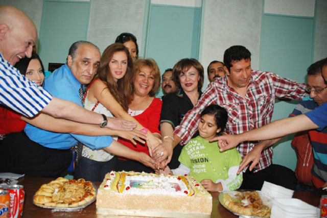 اثناء الاحتفال ببدء تسجيل المسلسل فى مبنى الذاعة والتلفزيون
