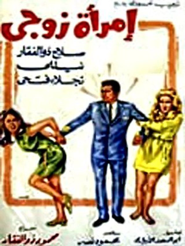 أفيش فيلم امرأة زوجي والذي انتج عام 1970 ويظهر بالأفيش صلاح ذو الفقار ونيللي ونجلاء فتحي.