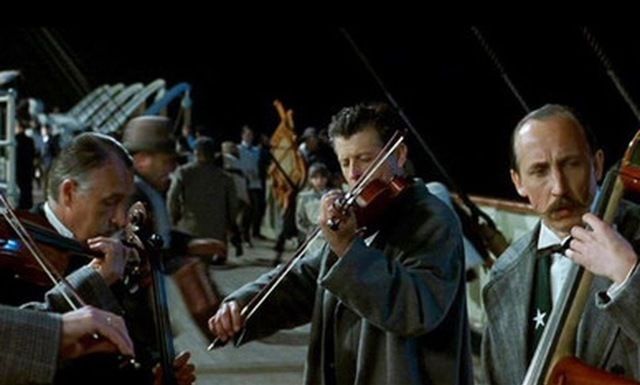 الفرقة الموسيقية تعزف لحنا هادئا أثناء غرق الباخرة حتى يحافظ الركاب على هدوءهم أثناء الغرق.