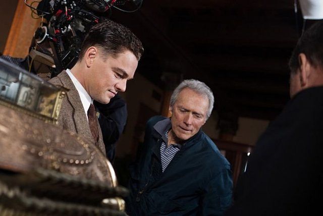 صورة لـ ليوناردو دي كابريو والمخرج كلينت ايستوود في كواليس فيلم جي إدجار.
