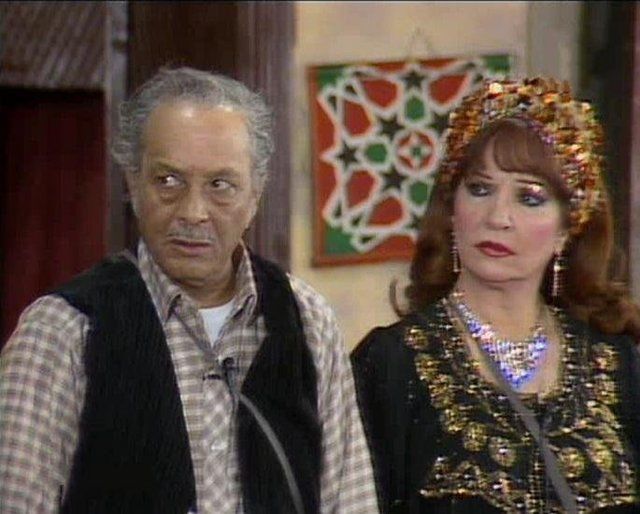مشهد من مسرحية ريا وسكينة يجمع الفنان عبدالمنعم مدبولي والفنانة شادية