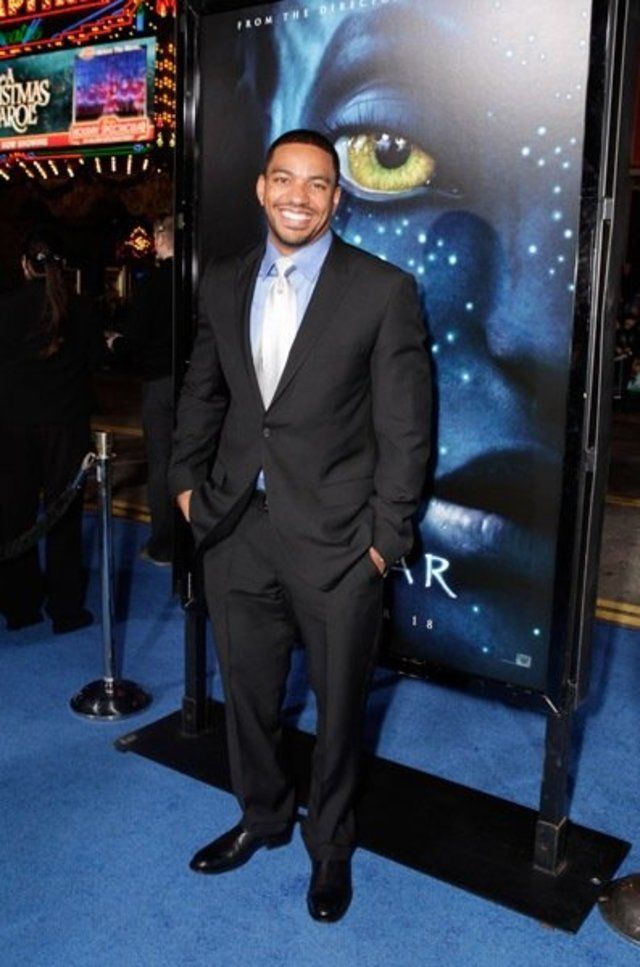 صورة للممثل لاز ألونسو من أمام بوستر فيلمه أفاتار