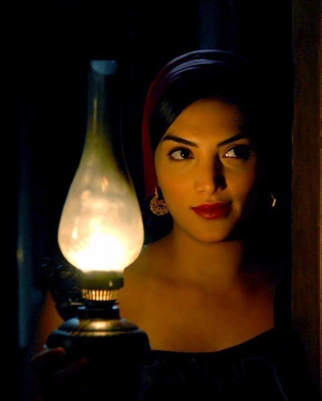 حورية فرغلى فى لقطة من مسلسل الشوارع الخلفية تحمل فى يديها لمبة كيروسين
