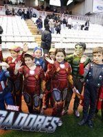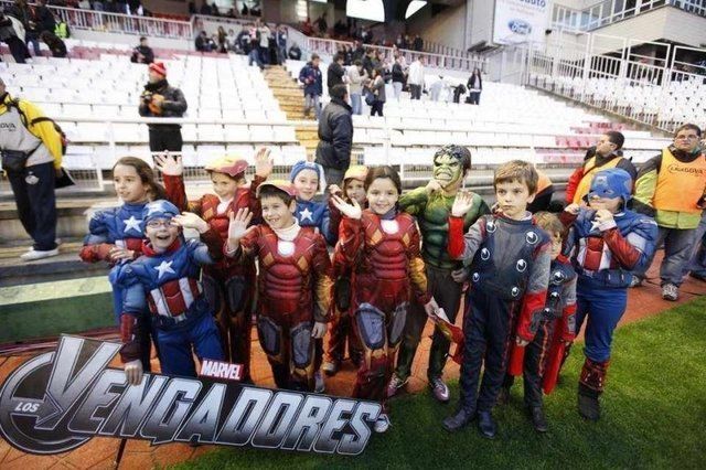 أطفال ستاد فاليكانو يرتدون ملابس أبطال "The Avengers" أثناء مباراة فريقهم ضد برشلونة
