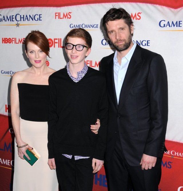 النجمة جوليان مور برفقة زوجها وابنها في العرض الأول لـ (Game Change) في نيويورك