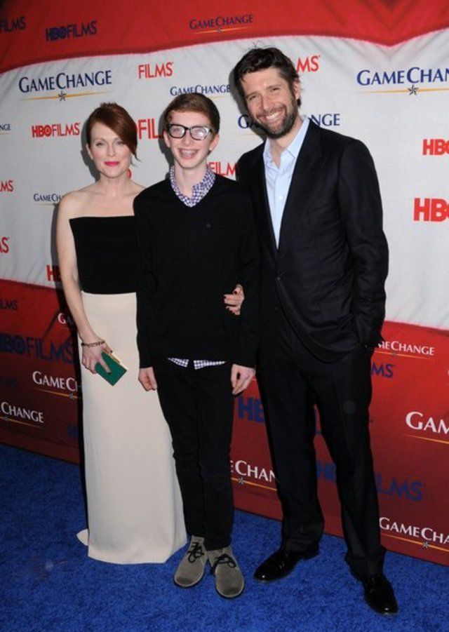 النجمة جوليان مور برفقة زوجها وابنها في العرض الأول لـ (Game Change) في نيويورك