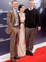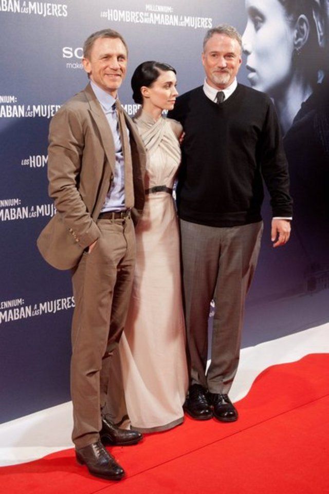 مخرج الفيلم ديفيد فينشر مع بطلي فيلمه أثناء العرض الخاص له بمدريد