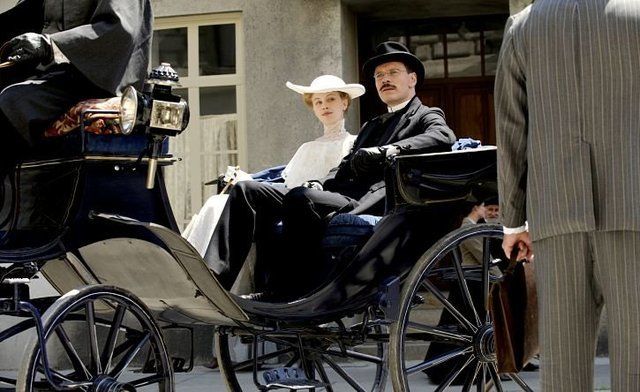 مايكل فاسبندر مع إحدى الممثلات فى مشهد داخل عربة قديمة