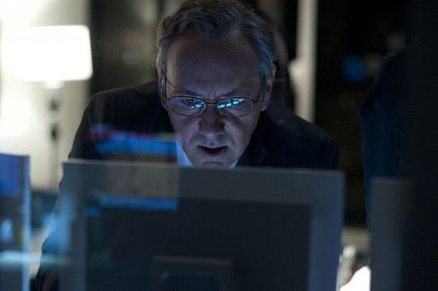 الممثل كيفين سبيسى فى لقطة من الفيلم يتابع فيها شاشة الحاسب.