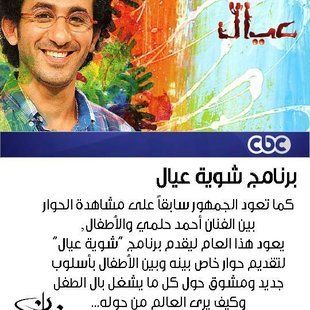 A comedy hosted by actor Ahmed Helmy that seems to have a similar theme to his older program "Kids Play" which originally introduced Ahmed Helmy and gave him appeal to the public.