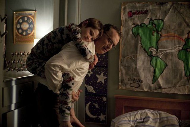 مشهد لتوم هانكس بفيلم Extremely Loud and Incredibly Close يحمل ابنه توماس هورن الذي يقوم بدور اوسكار شيل
