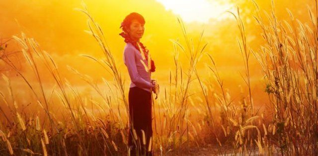 صورة للممثلة الماليزية ميشيل يوه وهي وسط الحقل