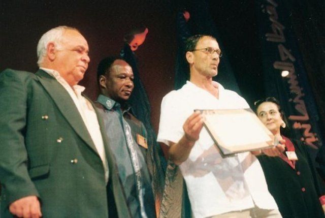 استلام جائزة أفضل فيلم وثائقي عن فيلم"جنين...جنين" في مهرجان قرطاج السينمائي.