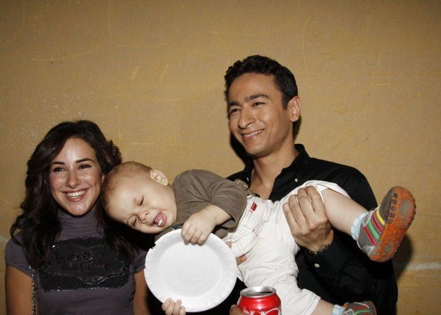 صورة تجمع بين كلا من حمادة هلال وشيرين عادل في الاحتفال بقرب الانتهاء من تصوير فيلم أمن دولت.