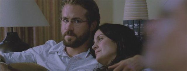 صورة لكاري آن موس وهي تضع رأسها على كتف ريان رينولدز