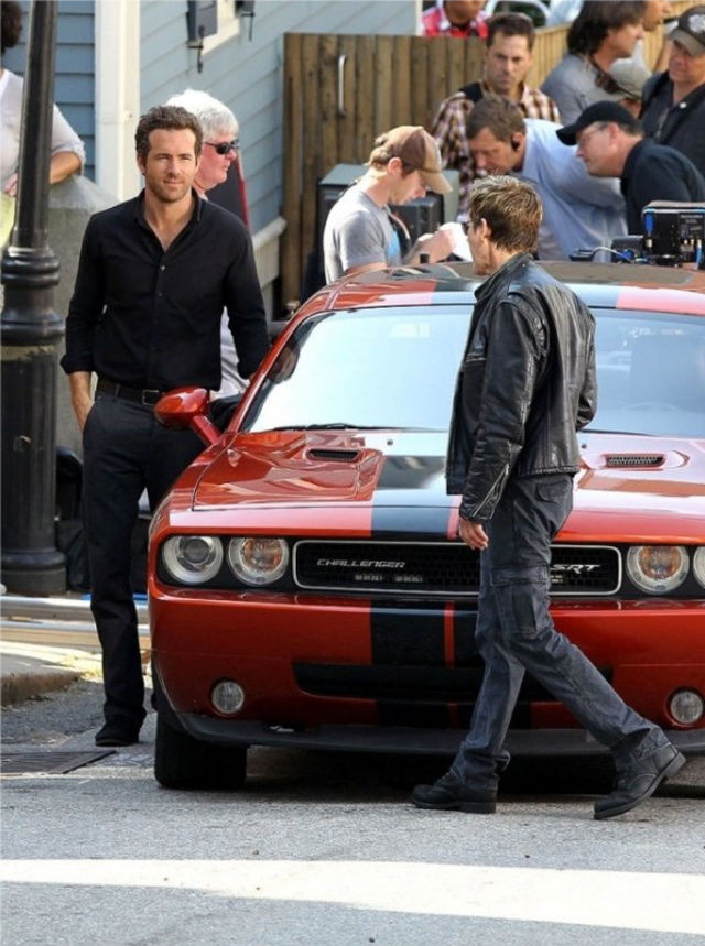 صورة للممثل ريان رينولدز وهو يقف بجوار السيارة.
