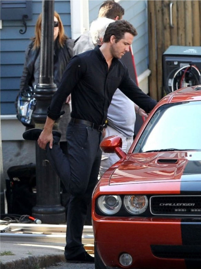 صورة للممثل ريان رينولدز وهو يقف بجانب السيارة