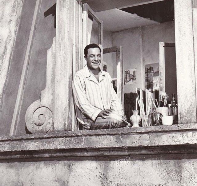 جين كيلى بالبيجامة فى نافذة مرسمه.