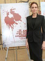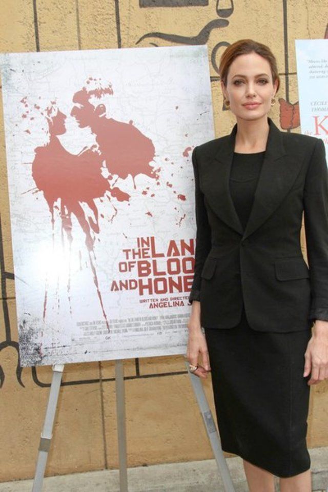 أنجي بجانب أفيش فيلمها In the Land of Blood and Honey في الحفل