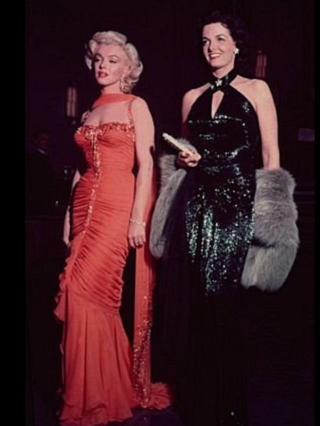 مارلين مونرو مع جين روسيل أثناء الدعاية للفيلم.