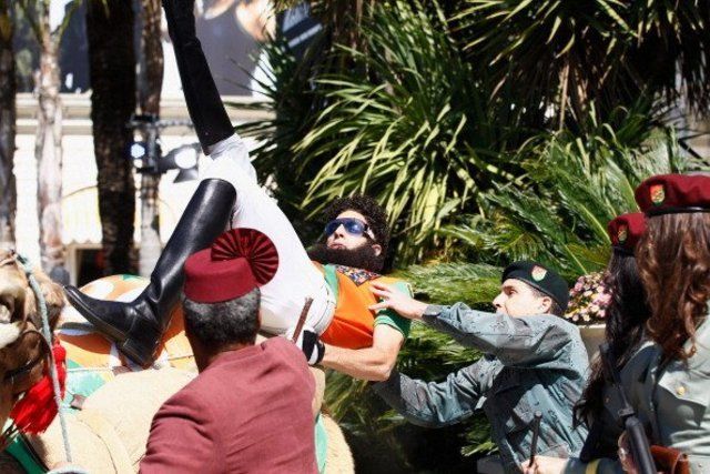 جولة لبطل فيلم الديكتاتور ساشا بارون كوهين بصحبة جمل في شوارع باريس بالزي الرسمي لشخصة فيلم الديكتاتور (الجنرال)