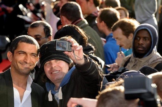 الجمهور يحصل على بعض الصور الفوتوجرافية مع النجم عمرو واكد أثناء حضوره لحفل عرض فيلمه Salmon Fishing in the Yemen في لندن